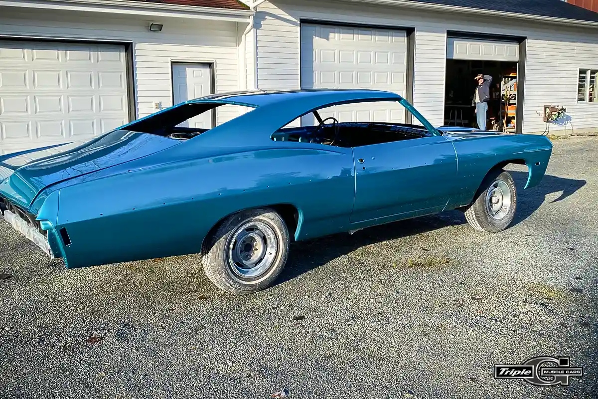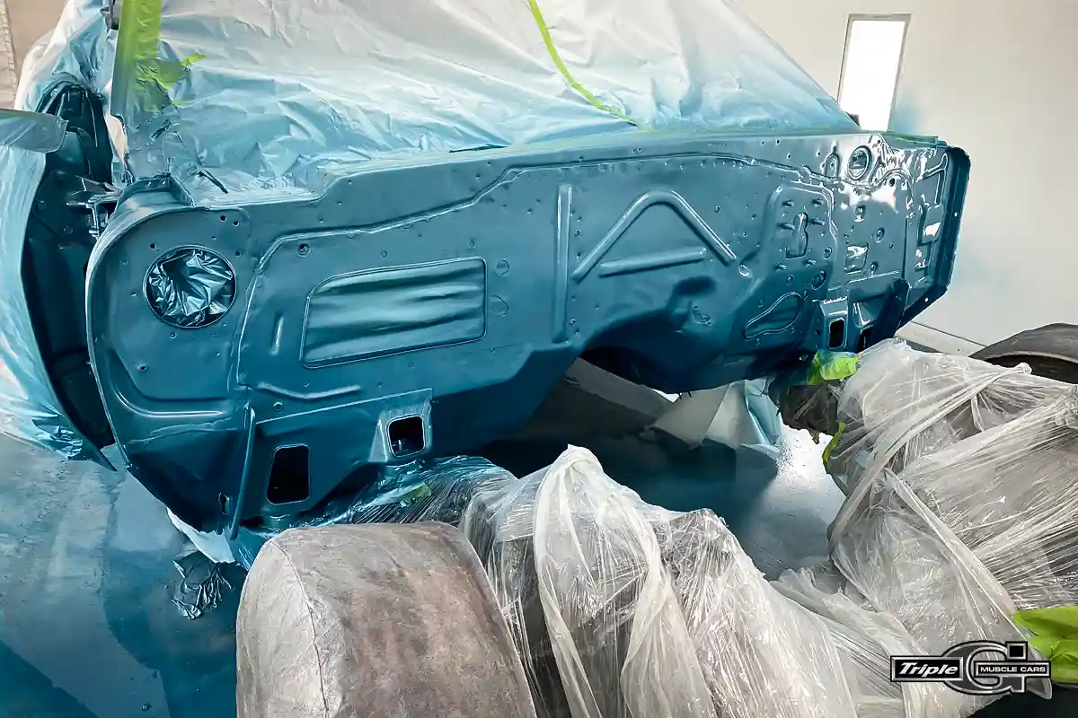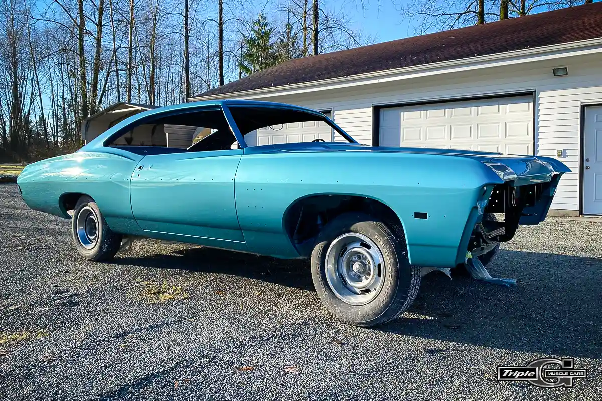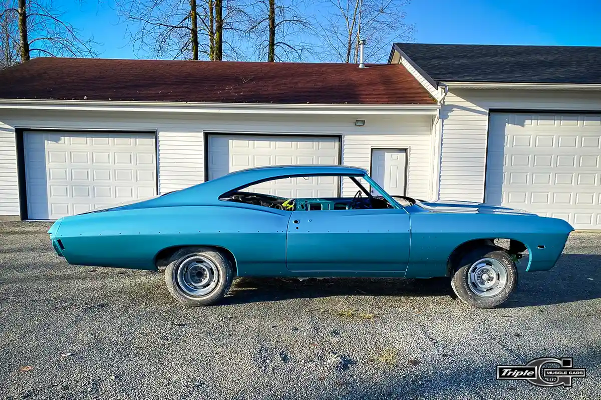 This 1968 Impala SS 427 came to us for a straightforward but high-quality paint job. The customer wanted a fresh look on a budget, aiming for a clean and vibrant finish in classic turquoise.