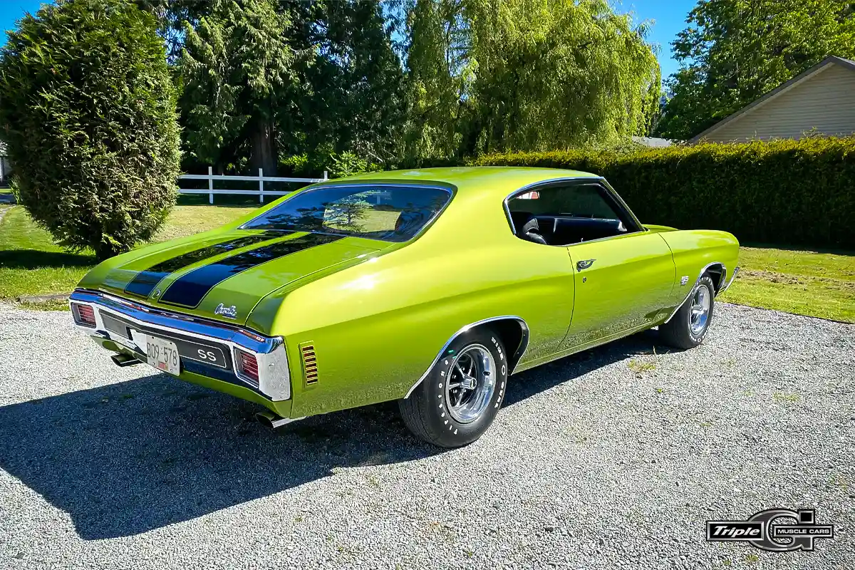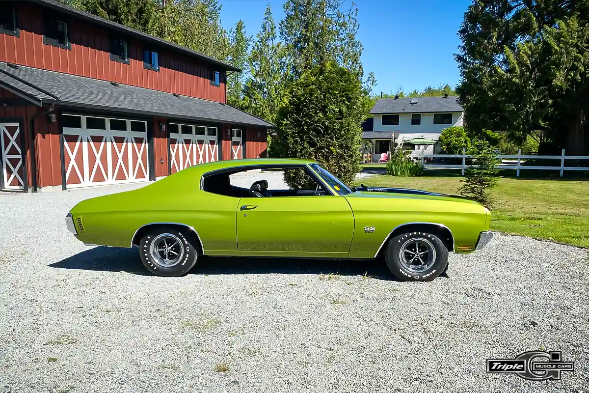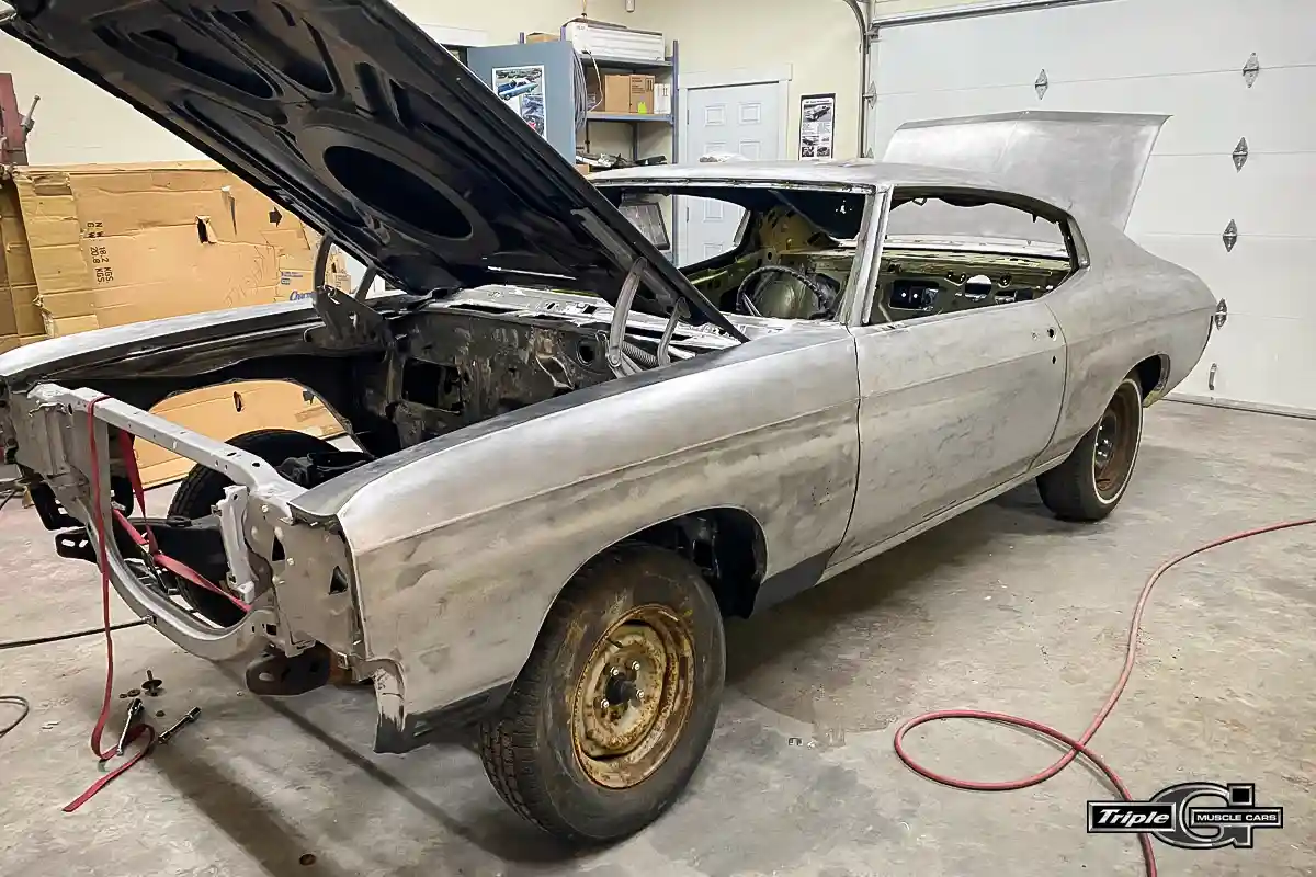 This 1970 Chevelle SS 396 came to us for a simple color change, returning it from cranberry red back to its original citrus green. What started as a paint job quickly evolved into a full frame-off rotisserie restoration, bringing this classic back to its true factory glory.