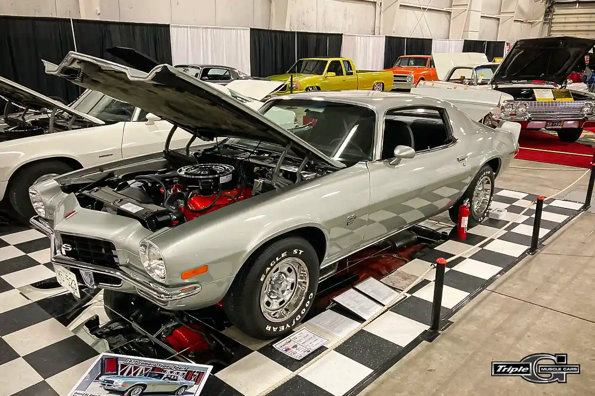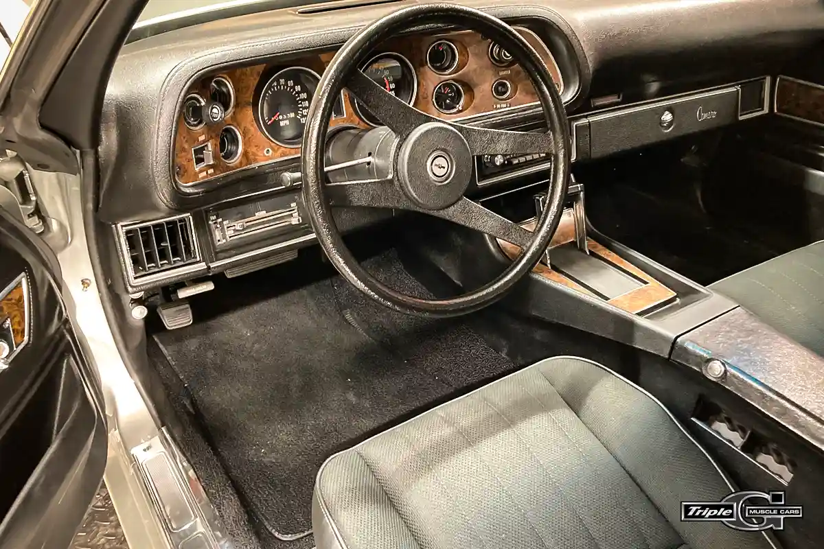 Originally sold new at Mussallem Garage Ltd. in Maple Ridge, this Camaro came well-optioned from the factory. Features include AV3 three-point seat and shoulder harnesses (introduced mid-year), a C50 rear window defogger (blower type), D55 front compartment floor console, and U14 full instrumentation with tachometer and clock — with the 1972 speedometer reading 130 mph instead of the earlier 150 mph. It’s also equipped with a U63 AM push-button radio, the Z27 Super Sport package, and a Z87 deluxe interior. Finished in factory code 14 Pewter Silver, this SS stands as a rare and beautifully preserved example of classic American muscle. We were proud to partner with Cam’s Classic Restorations and Sharp Touch Restorations.
